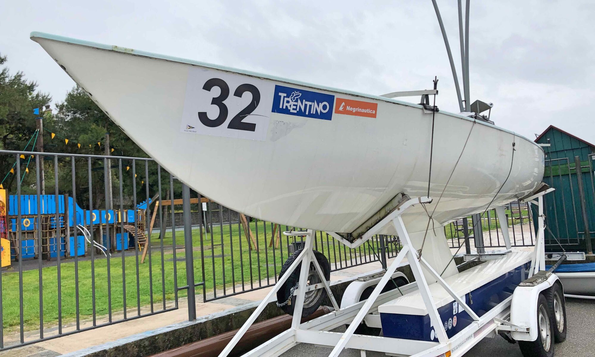 Boat Soling, 1990 Petticrow (SLO-1); good racing condition; Abbott mast (grey); Harbeck trailer. For rent or sale.